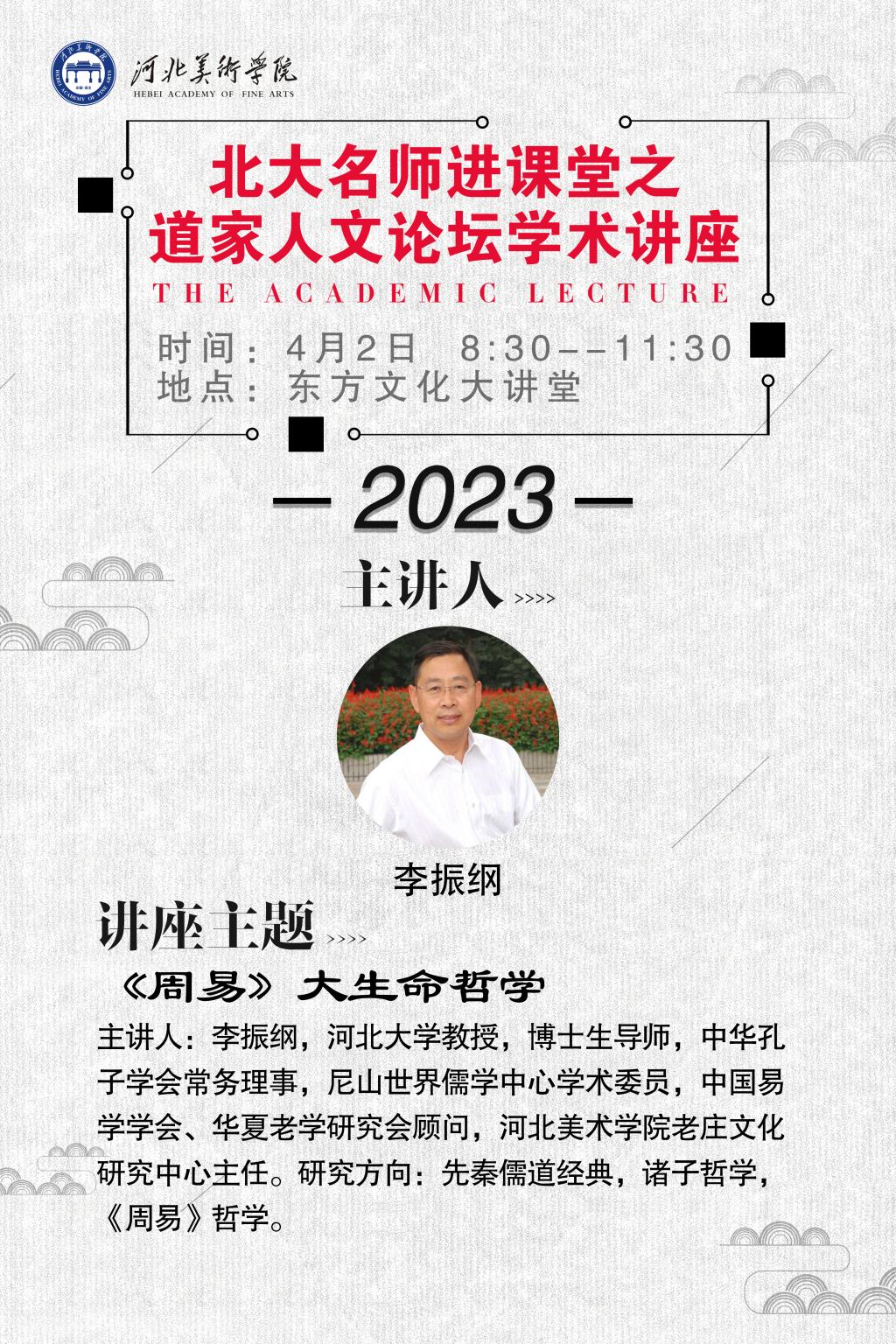 本次讲座是道家人文论坛学术讲座2023年的第一讲。其间,陈鼓应先生、寇方墀老师共同主讲“三玄四典”的学脉概述、李振纲老师主讲《周易》的大生命哲学精神、邰谧侠(Misha Tadd)老师主讲人类共同财富视角下的全球老学,苗玥老师主讲对《庄子》濠梁之辩再理解。