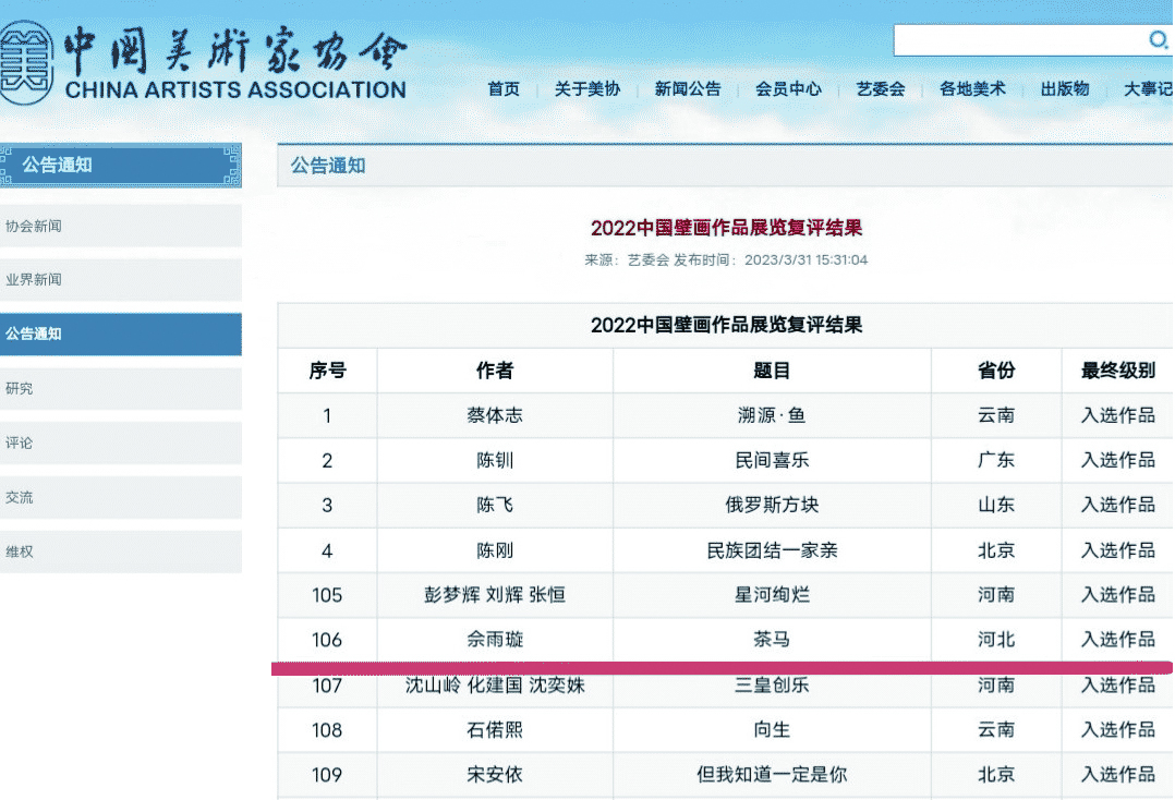 BEAT365唯一官网雕塑院壁画研究所佘雨璇老师壁画作品《茶马》入选由中国美术家协会主办的“2022中国壁画作品展览”。