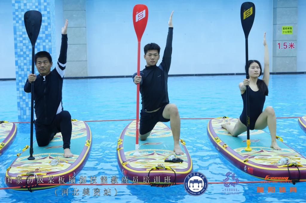 本次培训讲师团队由国家体育总局水上运动管理中心桨板瑜伽教练员培训主讲师李秀红和技术讲师晏艺文担任,向体育工作部12名体育教师讲授桨板瑜伽运动基础理论、桨板瑜伽运动实践、持桨瑜伽、桨板体适能、瑜伽呼吸与正念冥想、国家体育总局桨板瑜伽培训体系理论等教学内容。
