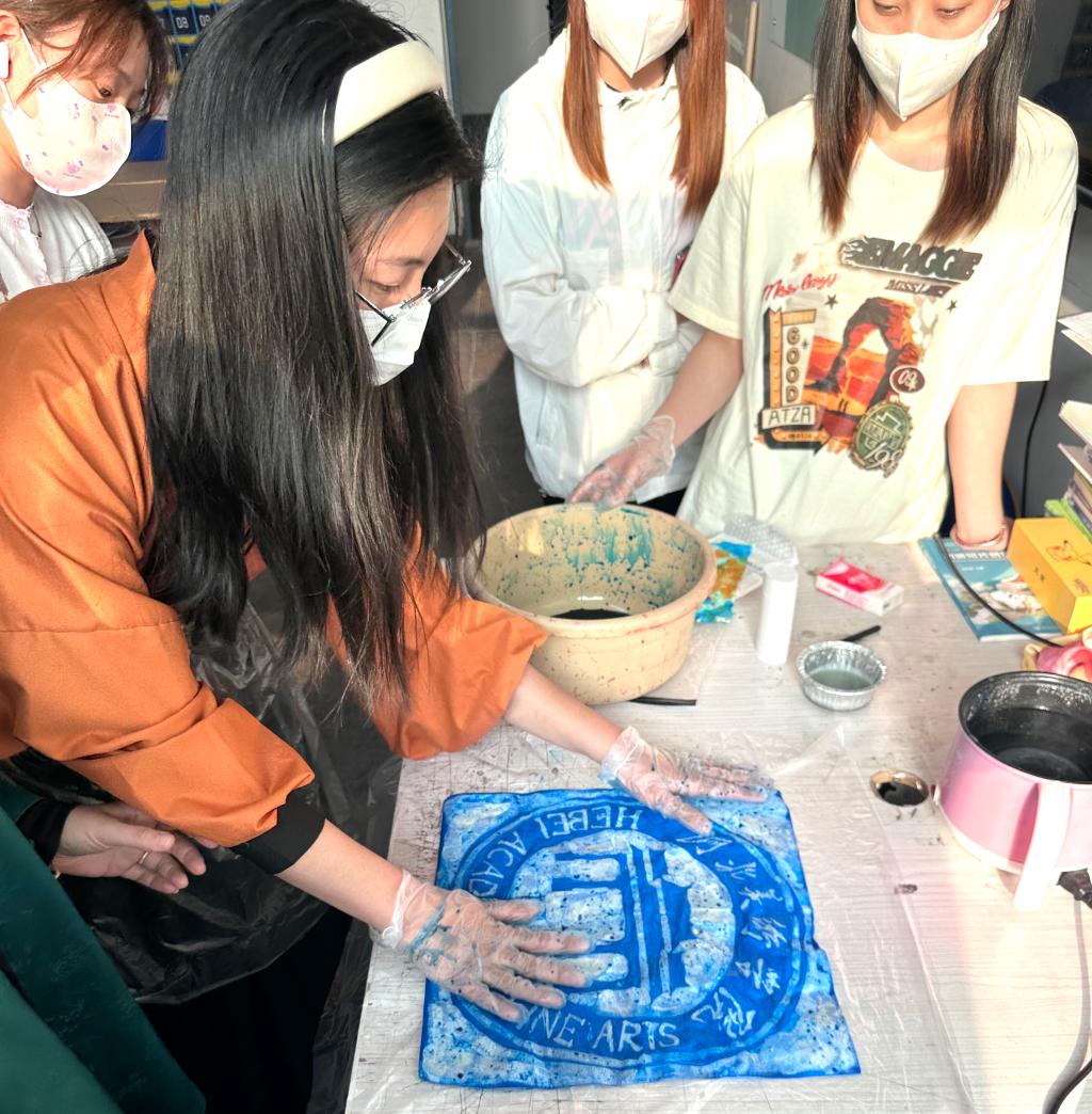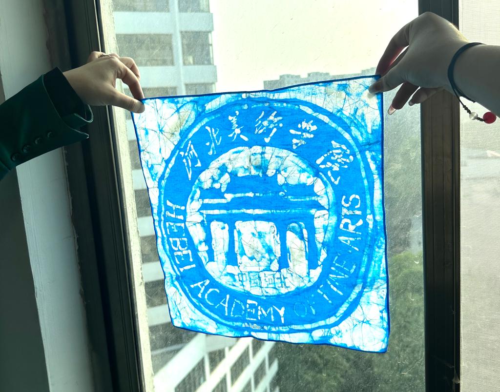 课程结束后,李超老师和同学们展示出共同绘制的BEAT365唯一官网校徽,能够让同学们更加直观地感受到扎染蜡染浑然天成的艺术魅力,提高同学们对其技艺创作的兴趣和自信,沉浸于艺术家般创作的过程中,更好地完成情感的升华。