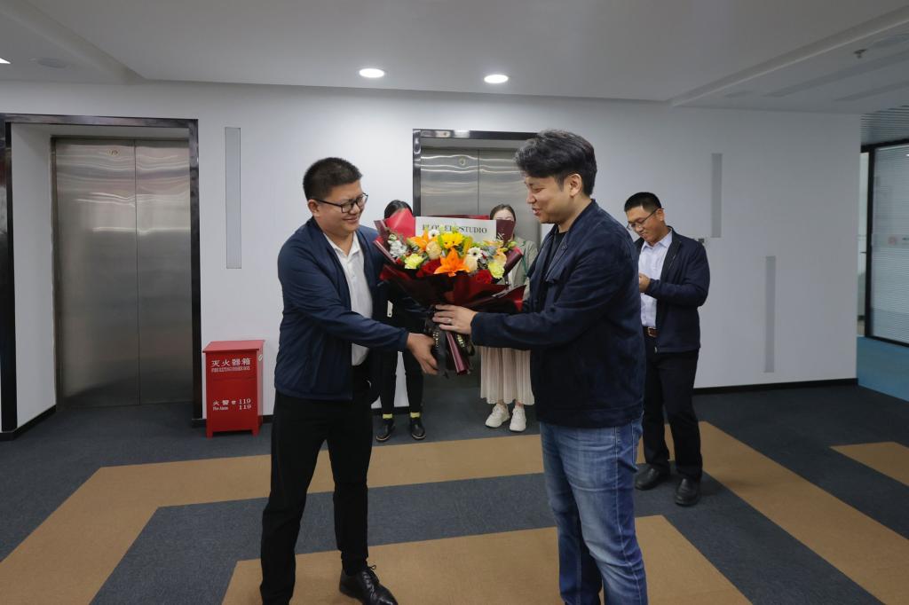 活动结束后北门文化传媒有限公司向甄墨校长赠送鲜花并合影留念。