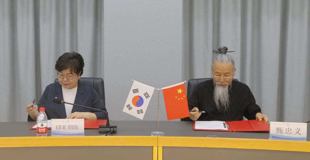 甄忠义校长与祥明大学金美亨(KIM MI HYOUNG)副校长签约