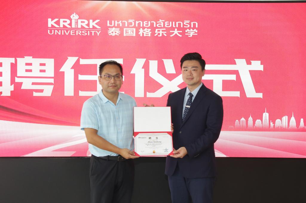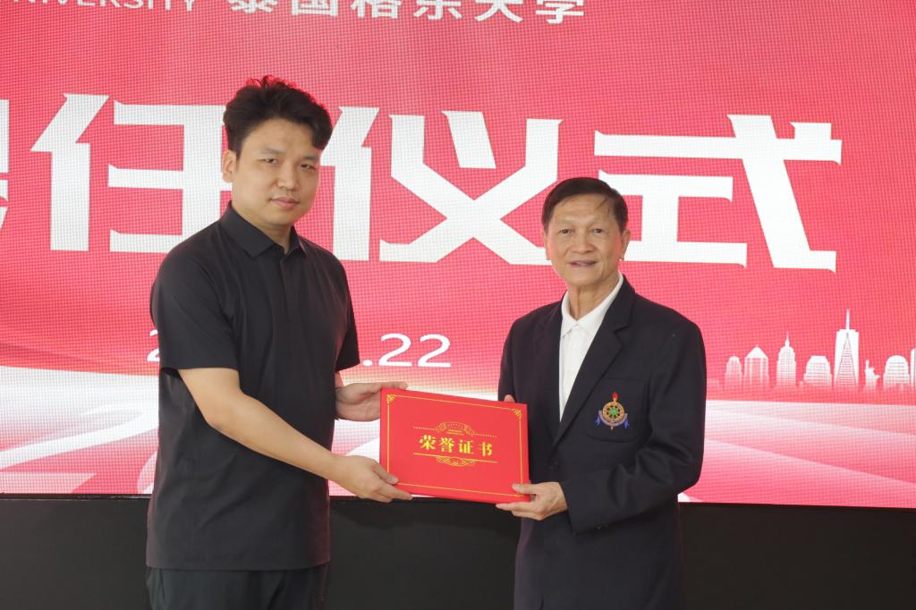 甄墨和甄心恒被聘为格乐大学硕士研究生导师,素帕和谢森为其颁发聘书。