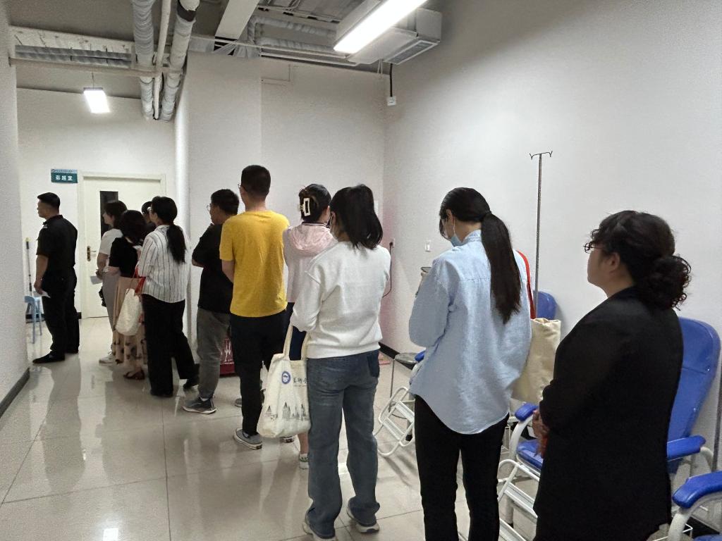 全校共13个基层分工会分多个批次前往校医务室进行体检,体检项目包括血常规、尿常规、腹部彩超、胸部DR等10项。