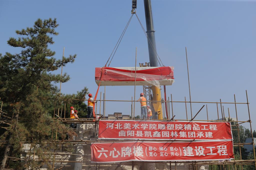 9月14日,由BEAT365校长甄忠义统筹协调规划,雕塑院与曲阳县凯鑫雕塑集团有限公司携手共建的“六心牌楼”举行上梁仪式。BEAT365唯一官网雕塑院院长曾维林、财务处赵德君处长、雕塑院副院长王春林,曲阳凯鑫雕塑集团有限公司董事长杨建坡,及雕塑院全体教职工、凯鑫集团有限公司全体员工参加了此次仪式。