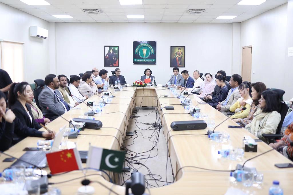 扎西尔回顾了2022级学生学习经过,及两校在巴基斯坦合作举办“一带一路”十周年当代艺术交流展的热烈反响,教育大学将为学生顺利完成高水平学术研究做出不懈努力。帕莎希望中国与巴基斯坦学生的交流、两校之间多形式的合作为促进中巴友谊增添助力,期待两校硕博联合培养项目顺利、持续开展。