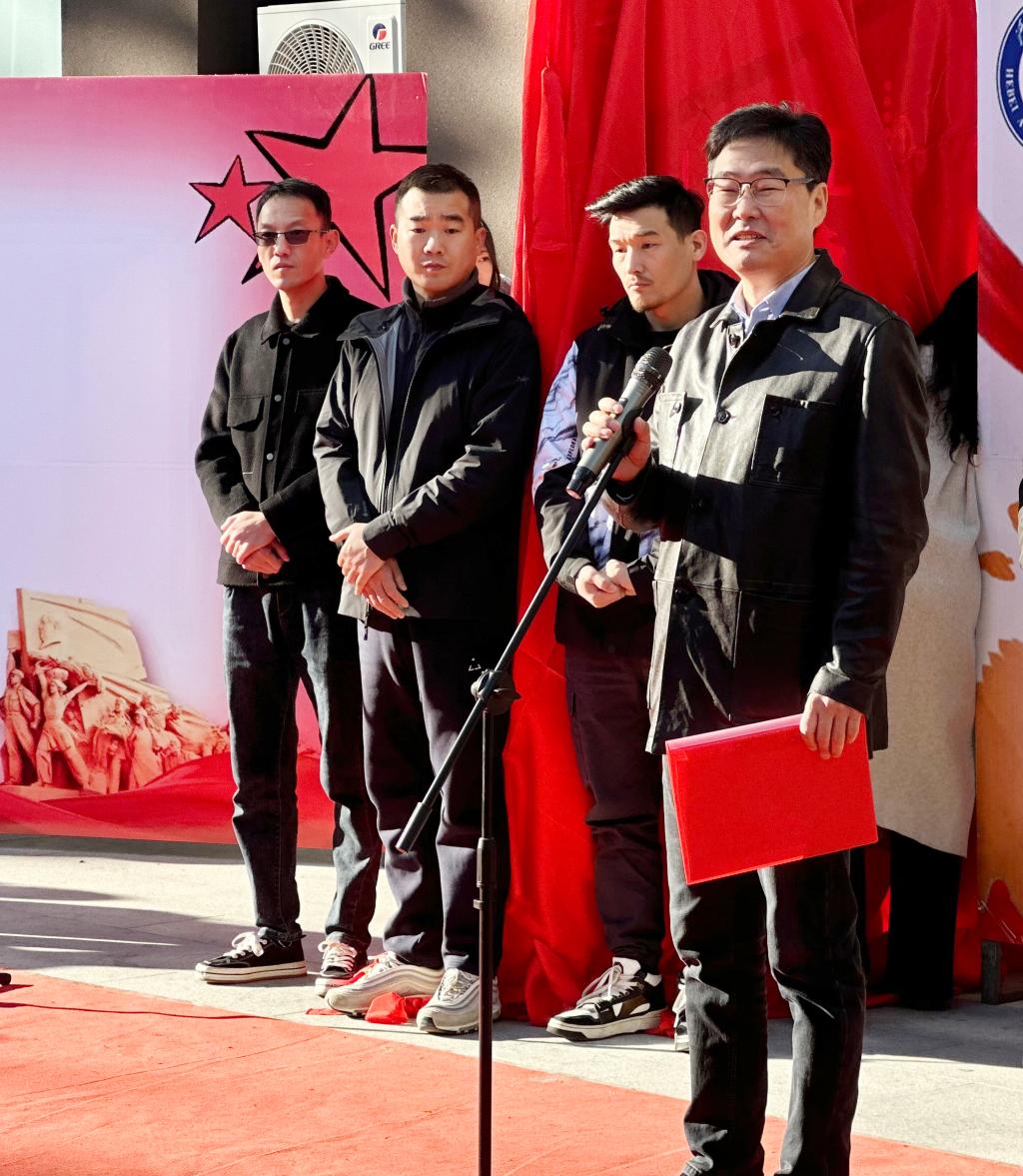 校长甄忠义亲自为社区题字“铸魂育人”。与会领导为社区揭牌。