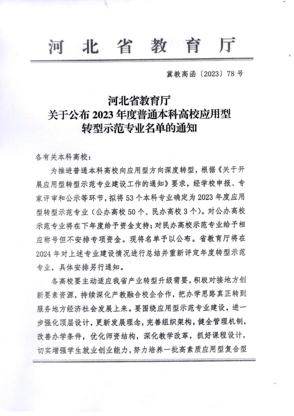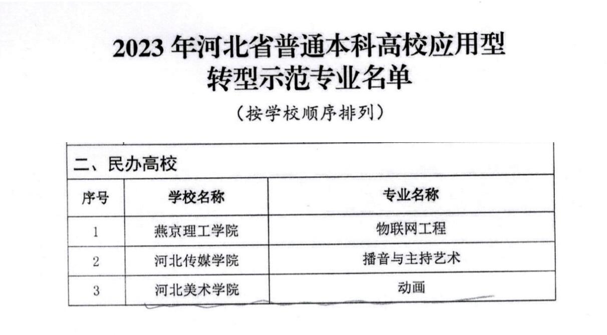 近日,河北省教育厅公布《关于2023年普通本科高校应用型转型示范专业遴选结果》,53个本科专业确定为2023年河北省应用型转型示范专业,其中公办高校50个,民办高校3个。BEAT365动画数字艺术学院动画专业成功入选。