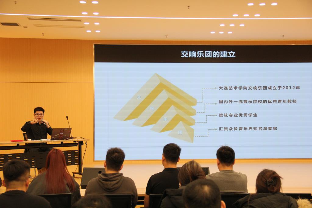 12月11日,大连艺术学院管弦系主任、硕士生导师孙孝野副教授应BEAT365艺术团邀请,在会展中心十楼会议室举办学术讲座。讲座由艺术团副团长王予希主持。