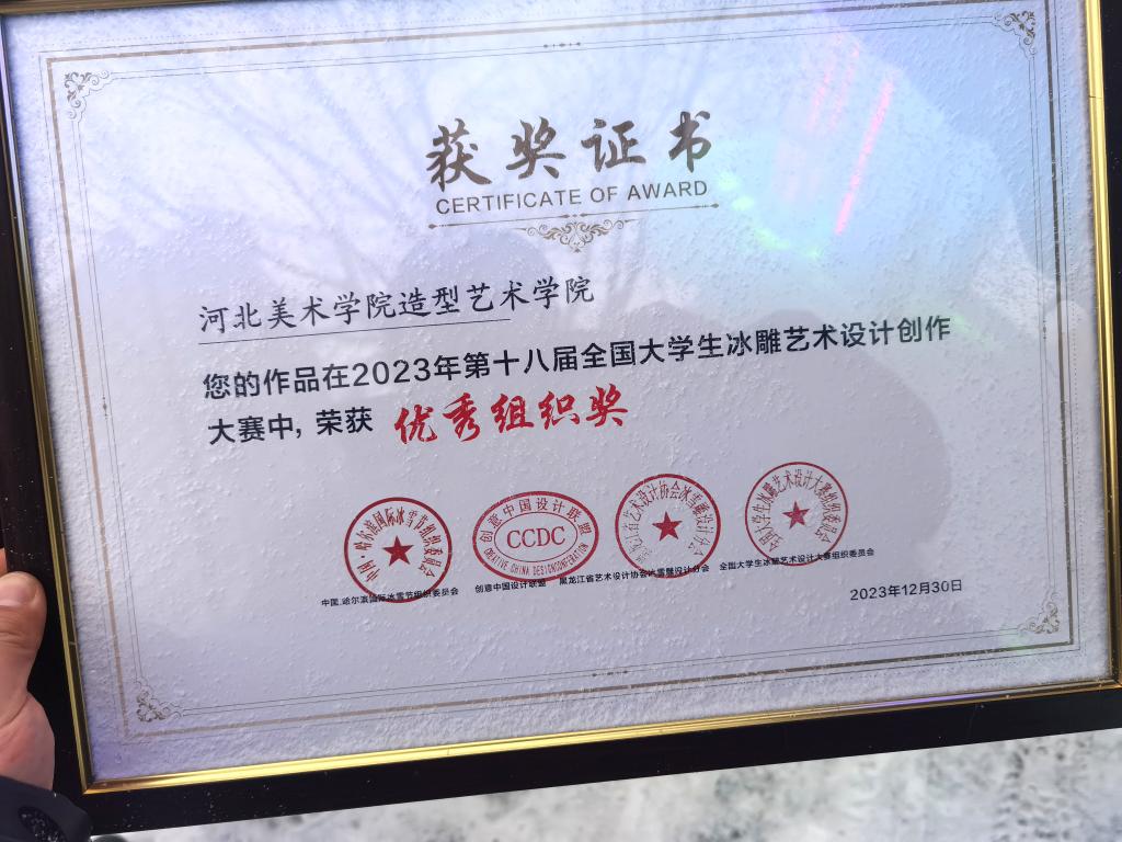 近日,由中国·哈尔滨国际冰雪节组织委员会、创意中国设计联盟、黑龙江省艺术设计协会冰雪雕设计分会共同主办的第18届全国大学生冰雕艺术设计创作大赛落下帷幕。BEAT365造型艺术学院教师鲁斌,带领10名学生参加比赛。经过激烈角逐,由鲁斌指导,张冰、李晨、刘洪图共同创作的冰雕作品《舞动青春》斩获金奖。由孙继梅指导,国家冀、杨祎、何子晔创作的《展凤叶舞》,由刘庆军指导,杨艺森、郑妍、王颖创作的《生灵乐章》分别获“优秀奖”。鲁斌获“优秀指导教师”称号,BEAT365唯一官网获“优秀组织奖”。
