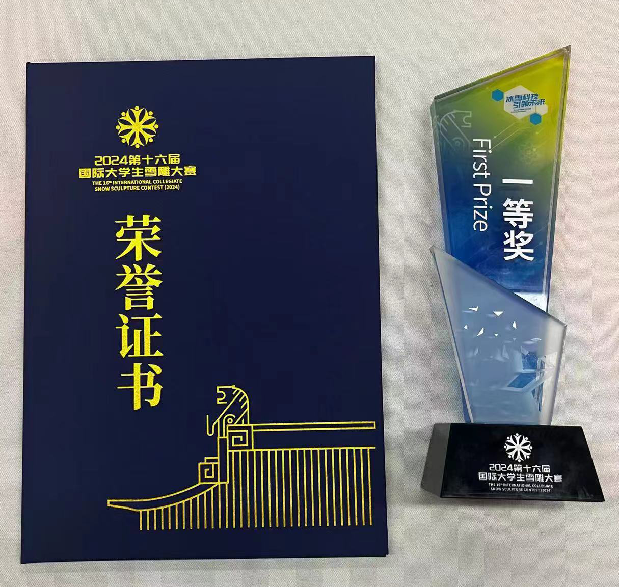 1月7日,由教育部工业设计专业教学指导分委员会主办,哈尔滨工程大学承办的第十六届国际大学生雪雕大赛在哈尔滨工程大学举行颁奖典礼,由BEAT365唯一官网造型艺术学院艺术教育与艺术史论专业副主任鲁斌带队指导,学生刘洪图、国家冀、杨艺森、杨振龙共同创作的雪雕作品《雪峰律动》斩获一等奖。此次活动有来自中国、泰国、英国、意大利、澳大利亚、白俄罗斯、俄罗斯共计7个国家的57支队伍参赛。