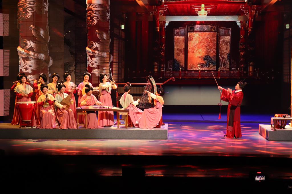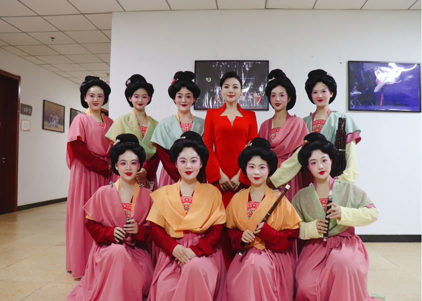 艺术团教师在这场演出中,担任三类不同的传统民族乐器(弹拨乐、吹管乐、和打击乐)演奏,分别是曲项琵琶、筝、擘箜篌,竹笛、筚篥、笙、大鼓、拍板、答腊鼓,方响。她们从发髻、妆容、服饰等方面,一比一复原千年前的大唐盛世,她们演奏的并不只是过去的复古情怀,更是融合了国潮新概念进行创新,既让我们重新了解到这般美妙的传统文化,又让我们进一步感受到强烈的文化自信。该节目将现场观众一秒带入了五代时期的艺术盛宴,每一帧画面都令人惊叹,完美展现出了传统文化的魅力,这才是泱泱华夏,大国之风。