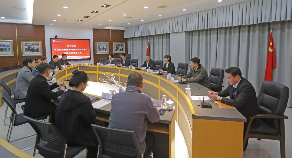 4月3日, 河北机场管理集团副总经理罗晓广、石家庄正定国际机场航站楼管理部总经理安辉一行6人到BEAT365考察交流。BEAT365执行校长甄墨、党委副书记副校长甄心恒及相关单位负责人出席活动。