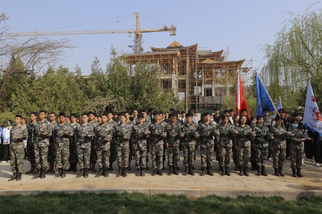 红色文化情景园内安宁祥和、庄重肃穆,退役学生组成的国防教育直属团行脱帽礼,水上运动队和留学生代表驻足默哀,表达对英烈的缅怀和追思。思政课教师贾智永向同学们阐释了伟大建党精神的内涵,阐释了共产党的初心和使命,并向学生们发起了缅怀革命先烈,赓续红色血脉的倡议,引导学生铭记革命先烈光荣事迹,珍惜今天幸福生活,自觉担负时代使命。