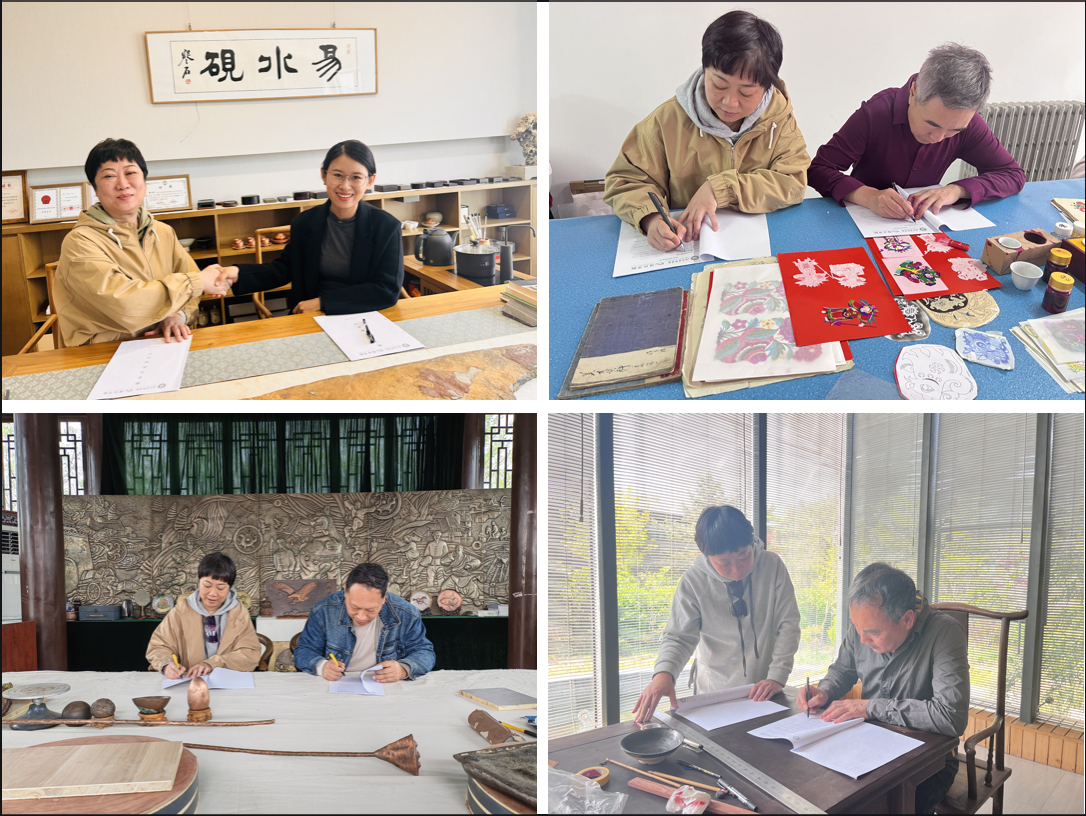 与易水砚、蔚县剪纸、王厂錾铜、薛氏漆艺签订校企合作协议