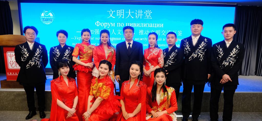 索菲亚中国文化中心主任洪海与艺术团合影