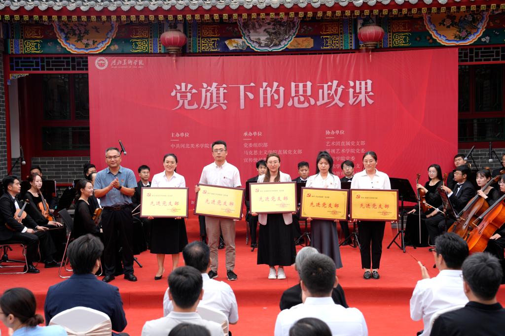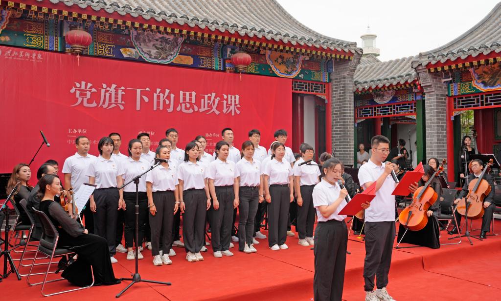 “党旗下的思政课”在交响乐团演奏红色经典曲目、歌唱家演唱《唱支山歌给党听》中开讲。气势恢宏的交响乐演奏《曙色》《把一切献给党》《我们走在大路上》,声情并茂的朗诵《战友》《破晓》《平凡与伟大》,富有韵律的快板《我心向党》,震耳欲聋的大合唱《没有共产党就没有新中国》,带领大家重温中国共产党百年奋斗的峥嵘历史,进一步坚定了在场每一位共产党员的信仰与信念。