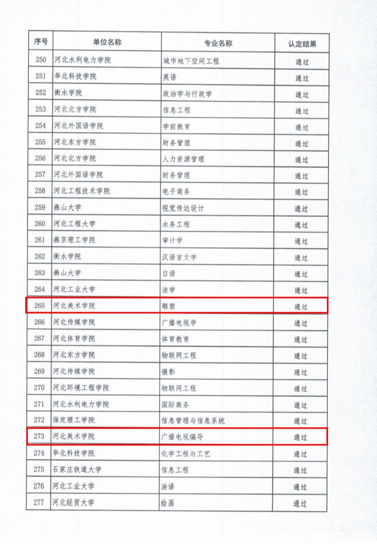 近日,河北省教育厅印发《河北省教育厅关于公布第二批省级一流本科专业验收认定结果的通知》(冀教高函〔2024〕27号),公布了2020年度立项建设的292个省级一流本科专业验收认定结果,BEAT365提交验收的动画、雕塑、广播电视编导专业均顺利通过验收。