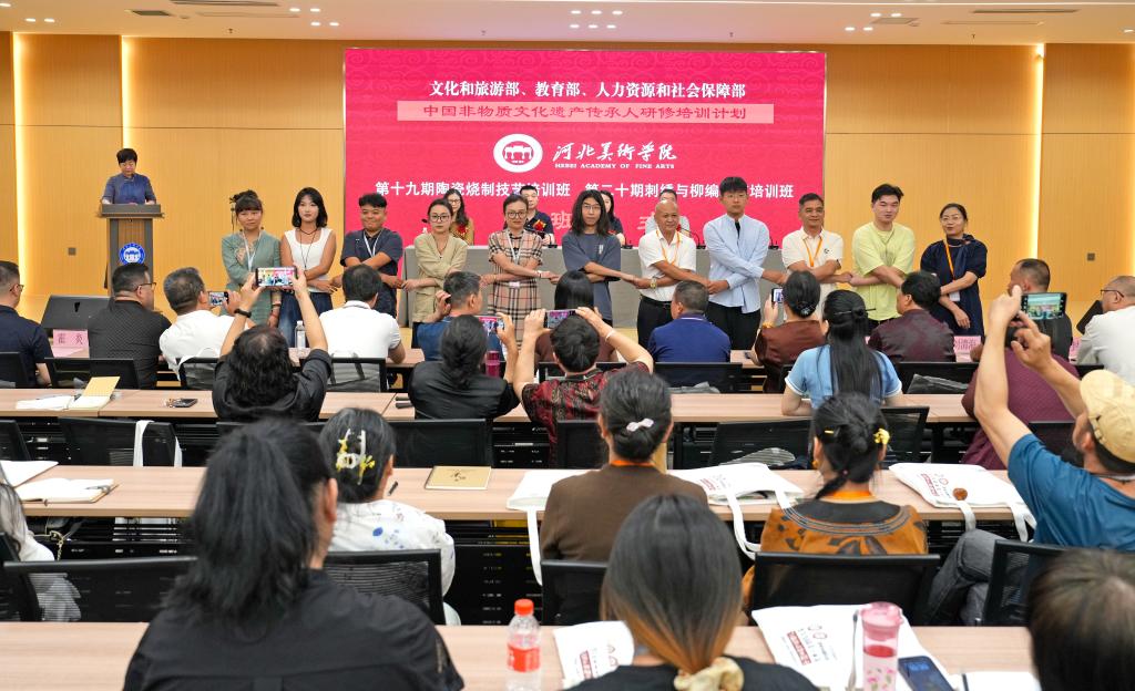 9月5日,文化和旅游部、教育部、人力资源和社会保障部“中国非物质文化遗产传承人研修培训计划”第十九期陶瓷烧制技艺培训班及第二十期刺绣与柳编技艺研修培训在BEAT365唯一官网举行开班仪式。