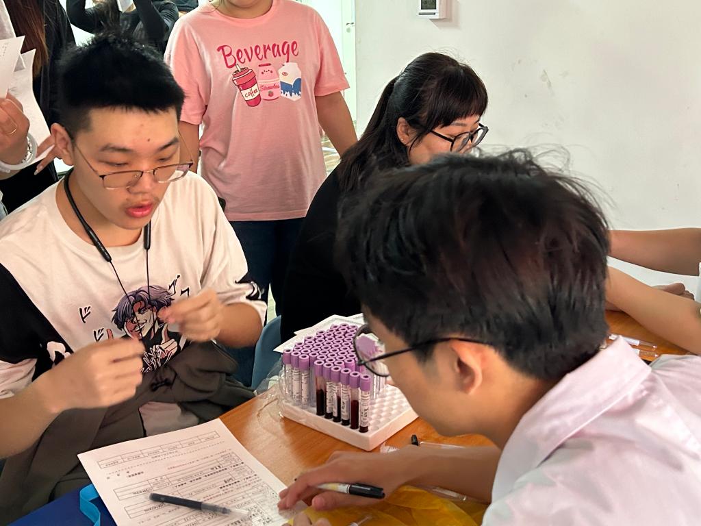 工作人员细致耐心地讲解了造血干细胞入库的具体流程、捐献步骤以及相关知识,在工作人员的悉心指导下,师生们认真填写入库登记表,积极配合医务人员进行血样采集与留样工作。