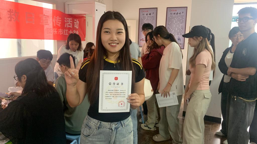 新乐市红十字会为造血干细胞血样采集志愿者们颁发了荣誉证书。