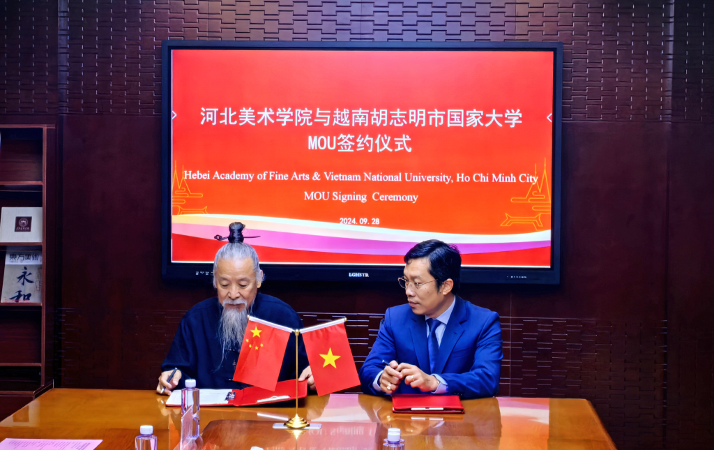 甄忠义致欢迎辞,并表达了对双方合作的期待。黎黄勇对越南胡志明市国家大学--人文与社会科学大学做简要介绍,表达了对双方合作的积极态度。双方就新媒体艺术专业合作办学项目的申报、招生、教学、管理等事项进行深入探讨,最终达成友好合作共识,签署合作协议。