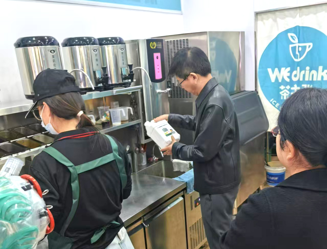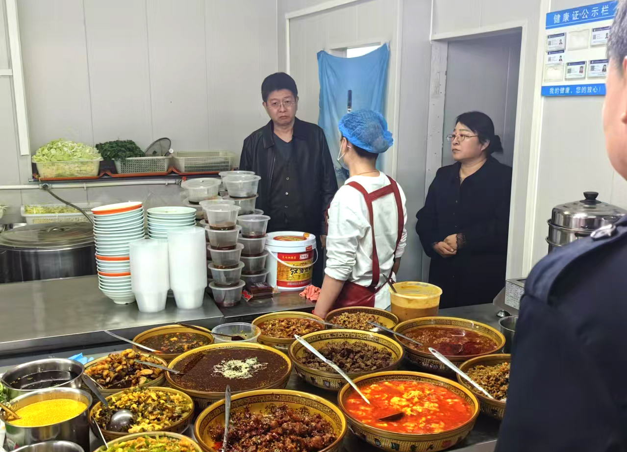 杨建一行深入学校餐厅后厨,对食品加工流程、食材储存、餐具消毒、环境卫生等各个环节进行了严格的检查,并详细询问了食堂工作人员关于食品采购渠道、食品留样制度的落实情况。