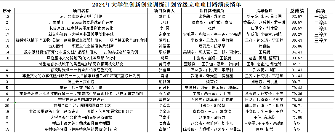 11月16日,由创新创业教育学院组织的2024年大学生创新创业训练计划省级及校级立项项目路演活动成功举办。在本次活动中,对计量电影学领域下的类型电影叙事节奏数据可视化研究、web4.0时代下影视作品的传播路径与影响力探究等40个立项项目进行了评审,由学校督导委、教指委及双创导师成员组成的14名评委老师和162名项目成员、kab大学生创业俱乐部志愿者参加了本次路演活动。