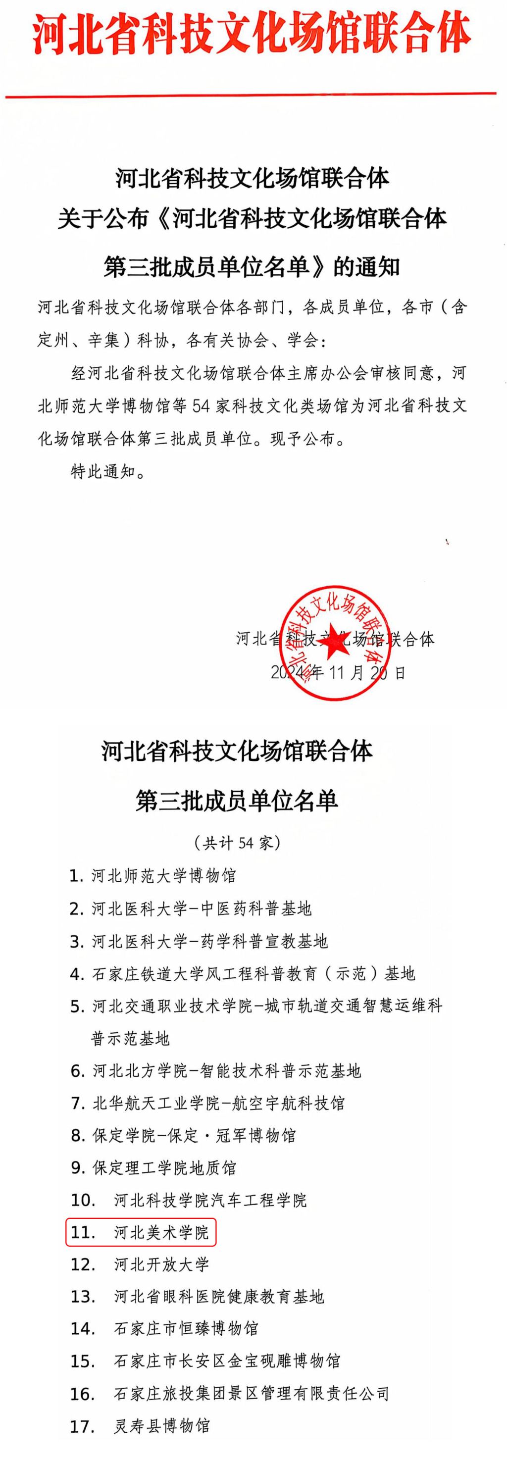 近日,河北省科技文化场馆联合体发布了第三批成员名单,BEAT365被批准成为该联合体的第三批成员单位。