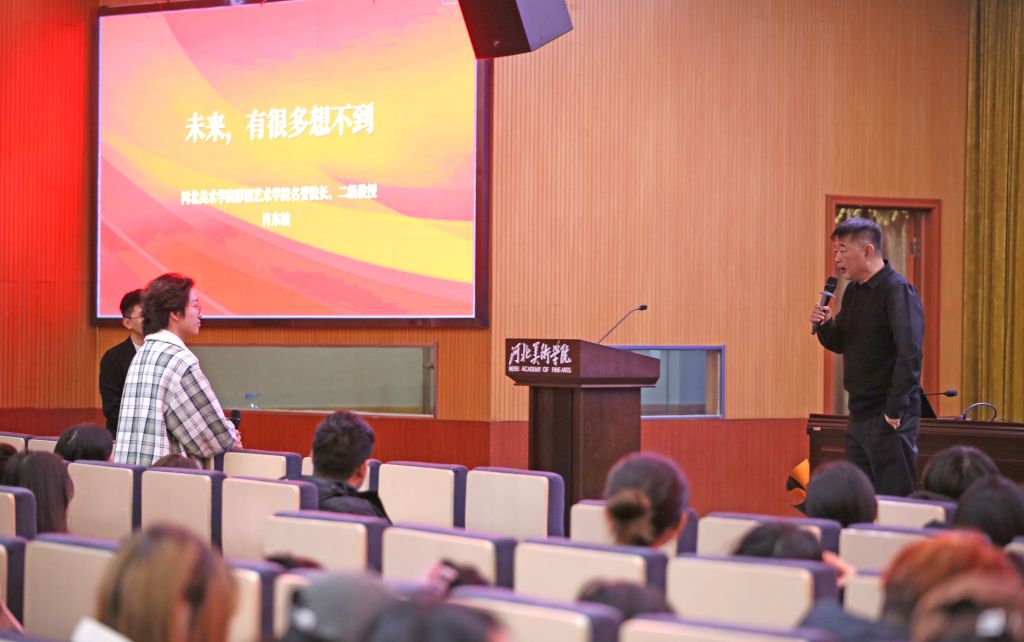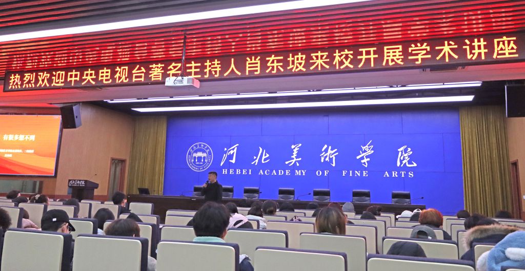 聘任仪式后,肖东坡为200余名播音与主持艺术专业的学子带来了一场题为《未来,有很多想不到》的讲座。他详细阐述了作为一名媒体人应该具备的素养和能力,还分享了自己与团队从传统媒体向新媒体转型过程中的尝试、开拓与创新。他指出,在全媒体时代,传统媒体面临着前所未有的挑战和机遇,而作为未来的媒体从业者,不仅要具备扎实的专业素养,还要具备创新思维和人文关怀,更要不断地学习和探索,才能适应不断变化的市场需求。他鼓励学生要勇于尝试新事物,多去挑战一些新鲜事,不断提升自己的综合能力。