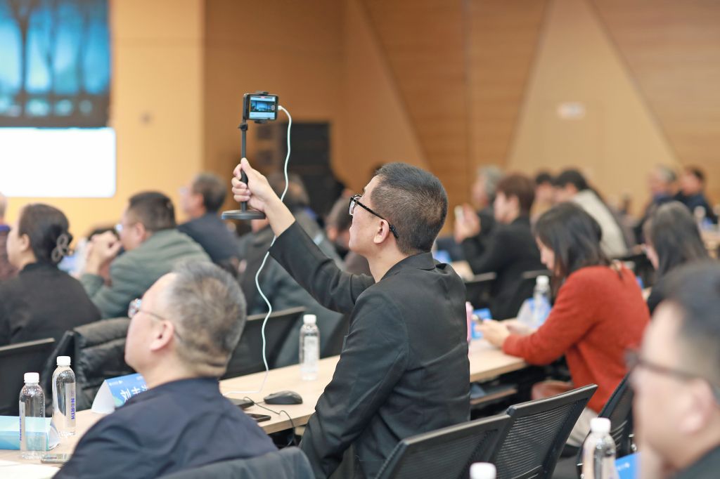 甄忠义致欢迎辞。他表示,当前正处于一个由数字智能驱动城市进步的关键时期,面对前所未有的机遇与挑战,我们探索如何更高效地运用数智技术来改善生活环境,推动高等教育的发展,希望与会专家积极贡献智慧,共同推动该领域向前迈进。