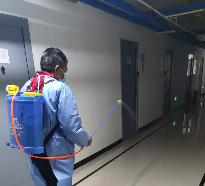 后勤管理与服务处调配专业消毒人员,组成多个消毒小组,对校园内的教学楼、图书馆、食堂、宿舍等重点区域进行了全方位、无死角的消毒作业。