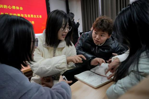 校院两级青马班学员临时团支部围绕“参加本期培训的心得体会”、“如何成长为一名坚定的青年马克思主义者?”“学生干部如何发挥模范带头作用?”进行交流讨论。学员们分享所感所想、所思所悟,充分表达了对习近平总书记关怀青年的感动,深刻体会到党和国家对青年的厚望。纷纷表示要在今后学习工作中以身作则、建立服务大家的思想,发挥好老师和学生的桥梁作用、带头作用、助手作用、凝聚作用和服务作用。