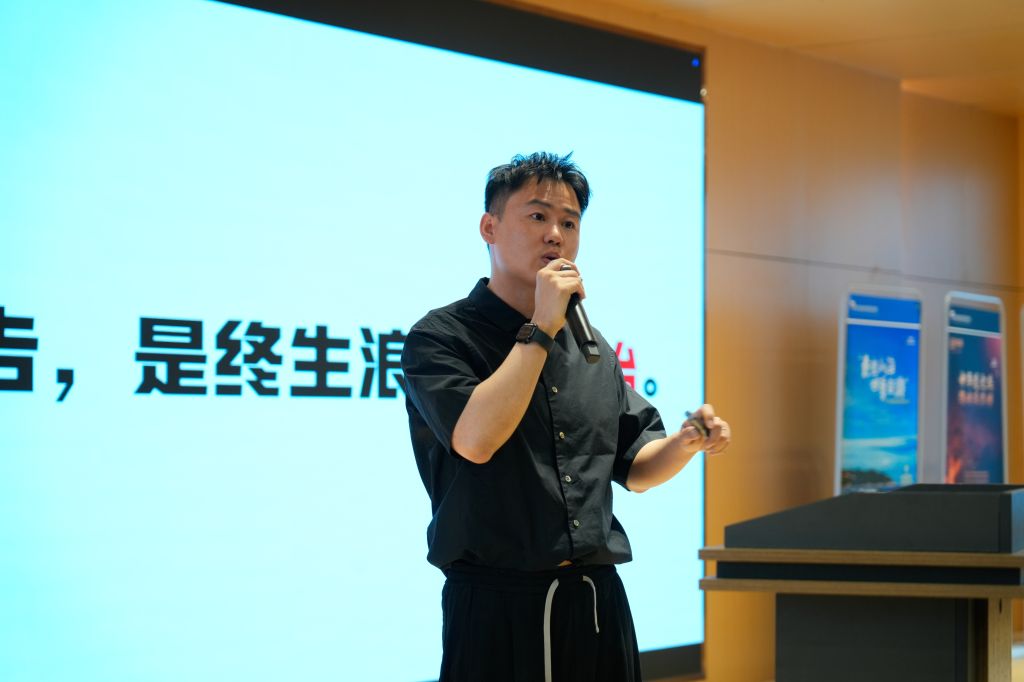 张厚炜全面介绍了赛事的发展历程、宗旨理念以及本届比赛的赛制规则和特色亮点。他强调,赛事的核心在于培育青年创意人才,并致力于构建一个跨界交流的平台,以推动创意产业的可持续发展。通过展示往届优秀作品所蕴含的社会责任与文化价值,赛事展现了对创新精神和人文关怀的双重追求。这不仅加深了在场师生对金犊奖的理解,也极大地激发了同学们的参与热情。
