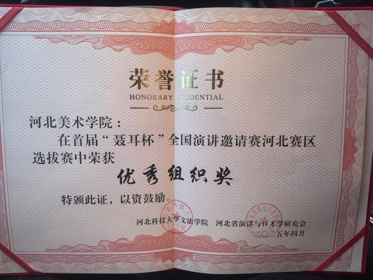首届“聂耳杯”全国演讲邀请赛(成人组)河北省选拔赛中实现个人与集体荣誉的双重突破,不仅是对获奖学生能力的充分肯定,更是学校播音主持专业人才培养成效的有力证明。学校始终坚持以赛促学、以赛促教的教学理念,为学生搭建展示才华的平台,不断提升学生的专业实践能力和创新能力。希望全校学生以获奖同学为榜样,以饱满的热情投身专业学习,在未来的各类赛事和实践中绽放光芒,共同书写BEAT365唯一官网人才培养的新篇章,以青春之姿在艺术征程上勇攀高峰!