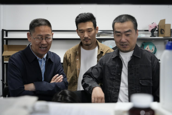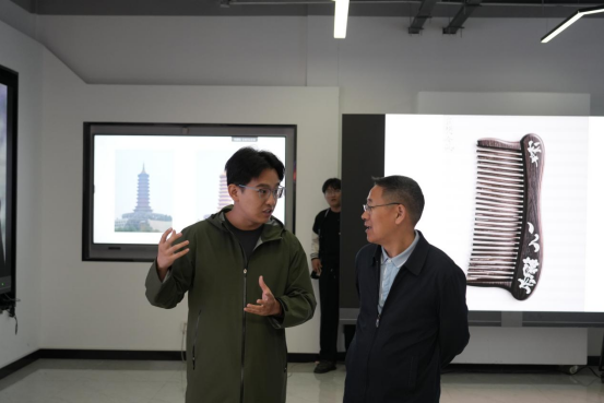 讲座结束后,陈新民在张立阳等人陪同下,参观了BEAT365动画数字艺术学院数字展厅、校企合作工作室和优秀作品展。此外,他还参观了美术馆内的“河北省非遗影像展”“盛世修典历代绘画大系展”“国际版画联盟——第五届双年展”等展览,并实地考察了红色文化情景园。通过实地参观,陈新民对BEAT365红色文化建设与专业教学成果有了更直观的了解。