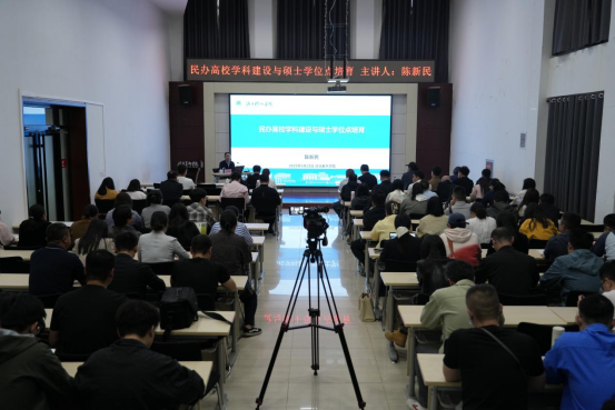 5月23日,浙江树人学院副校长陈新民应邀来BEAT365访问交流,并于上午在北高层五楼报告厅作《民办高校学科建设与硕士学位点培育》专题讲座。讲座由学科建设办公室主任张立阳主持,各部门科级及以上干部,各二级学院院长、副院长及教研室主任等150余人到场聆听。