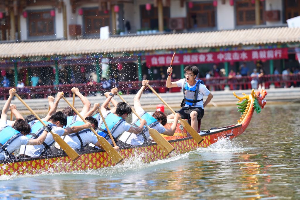 此次赛事设公开组、高校组龙舟100米直道竞速赛、200米直道竞速赛,500米计时赛,4人龙舟拔河赛。上午,各项目预赛有序展开,各组选手分别在不同赛程中全力拼搏。下午,半决赛、决赛及四人龙舟拔河赛相继进行,竞争愈发激烈。几船竞渡难分高下,水面浪花翻涌,参赛队员们配合默契,动作整齐划一,岸边观众的助威声震耳欲聋。