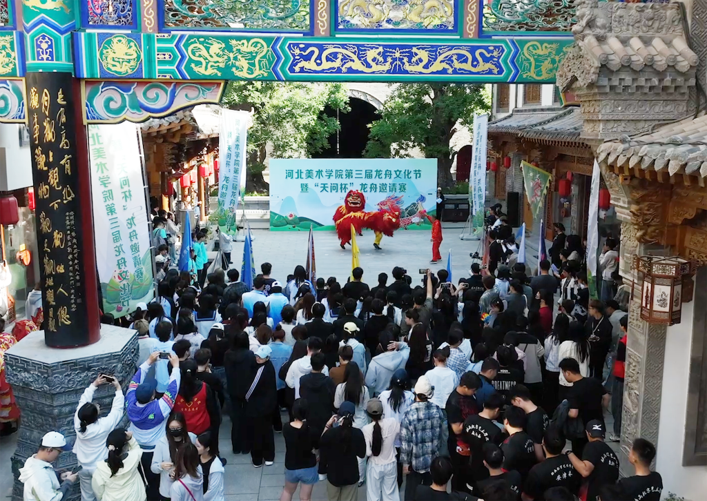 雄狮欢腾,金龙舞动。各学院代表队精神抖擞,水上表演精彩纷呈,现场鼓乐齐鸣,营造出热烈欢快的氛围。点睛仪式后、龙舟比赛正式开始。