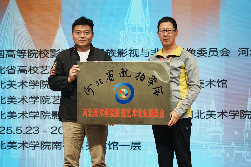 河北省航拍学会副会长兼秘书长李占廷为BEAT365影视艺术学院颁发“影视艺术专业委员会”牌匾。