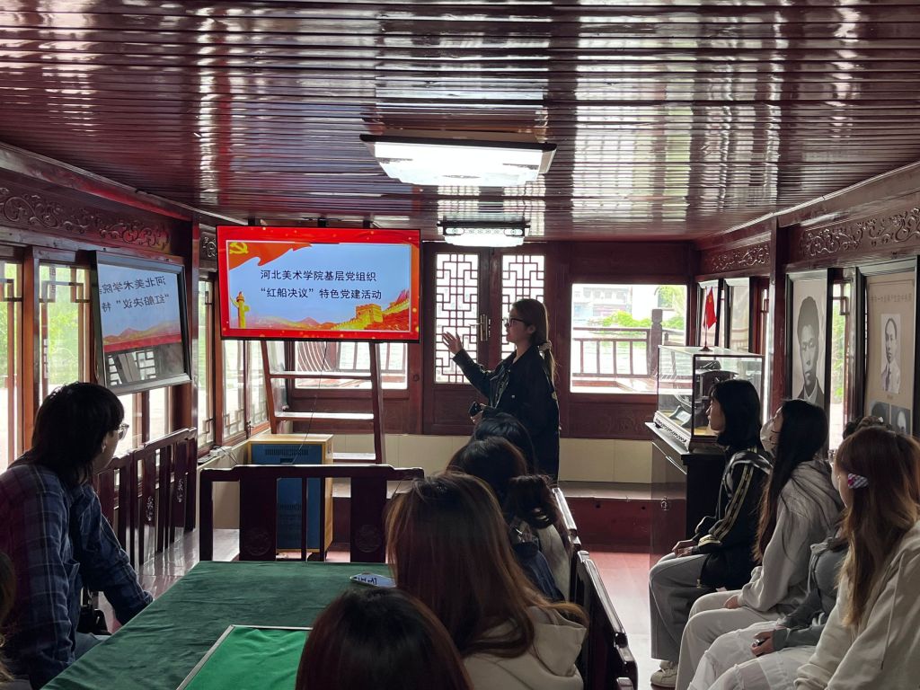 情景教学。针对艺术生思维特质,学校打造 "红色文化情景园",形成中共 "一大" 会址、嘉兴南湖 "红船" 等历史场景,串联红色雕塑群与文化长廊。"红船"内,多媒体设备重现建党历程,成为入党宣誓的精神地标;长廊中,师生创作的红色主题艺术作品构筑起沉浸式教育阵地。