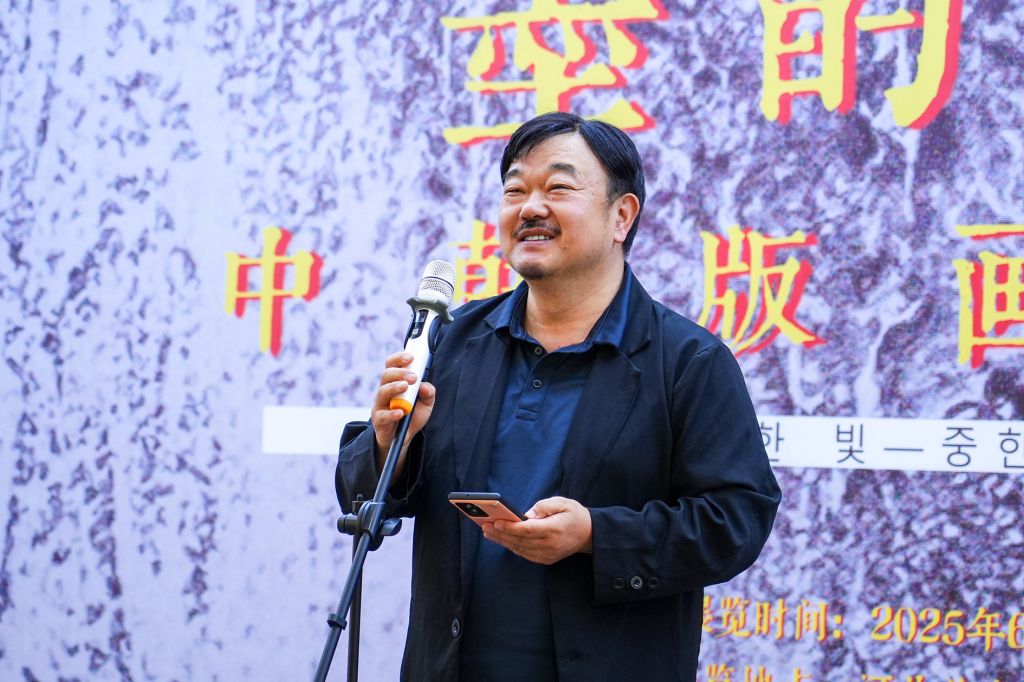 甄忠义在欢迎辞中表示,此次展览是一次艺术的盛会,更是一次文化的交流与对话。作品呈现了艺术家对生活的深刻感悟与对美的不懈追求,彰显了中韩两国版画艺术的魅力,为中韩搭建起艺术友谊之桥,促进了民间书画艺术的交流与发展。