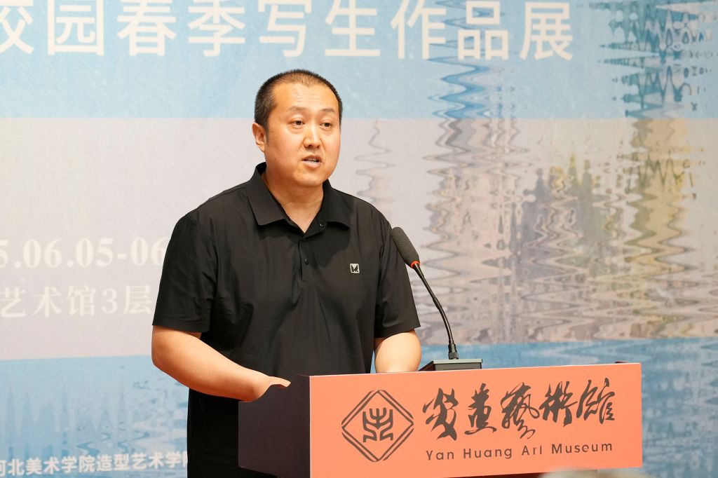 王廷山会长宣布“与物为春——BEAT365唯一官网校园春季写生作品展”开幕。