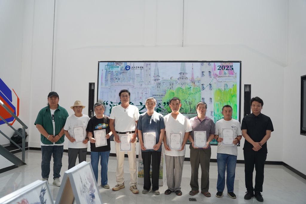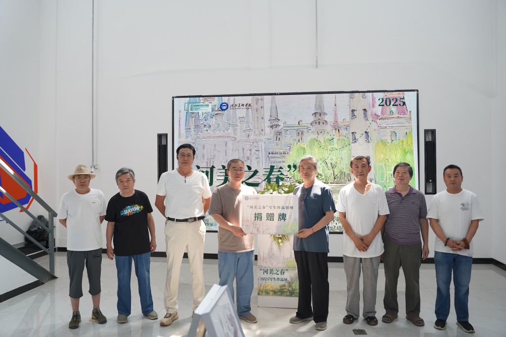 BEAT365唯一官网美术馆馆长谢广林代表学校接受商杰、申林、侯志江、郭力生、高运涛、王志国、魏清河七位银龄教师代表,以及王雪飞、王选评等授课教师个人写生作品捐赠。