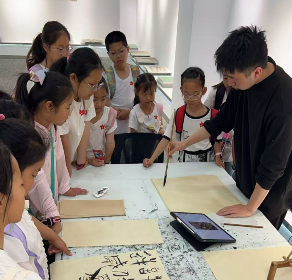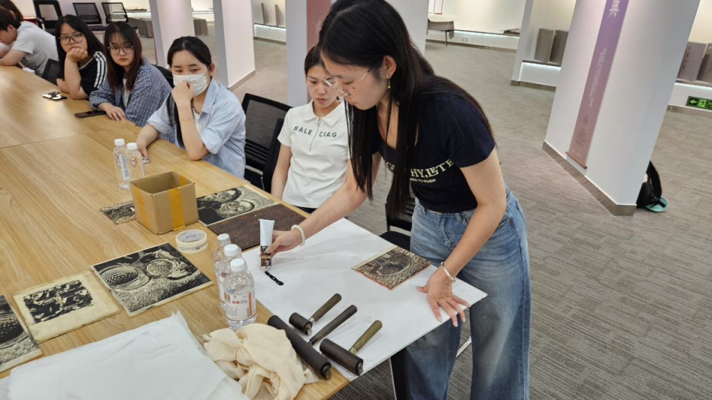 校园文化是校风的重要体现,而图书馆正是这文化的承载者。图书馆创新打造“艺术+”学习生态,依托数字资源线上学习项目,举办“千年蓝白意蕴扎染”“剪映BEAT365”“艳遇布老虎”等文化活动;以“盛世修典——中国历代绘画大系成果展”为依托,与造型艺术学院版画系、美术馆合办“黑白木刻版画体验”,联合美术馆、厚德研学基地开展青少年美育研学;携手造型艺术学院国画系、美术馆举办“校园书韵:青春的墨香”山水画临摹活动,激发学生自主学习热情,营造浓厚学术氛围。
