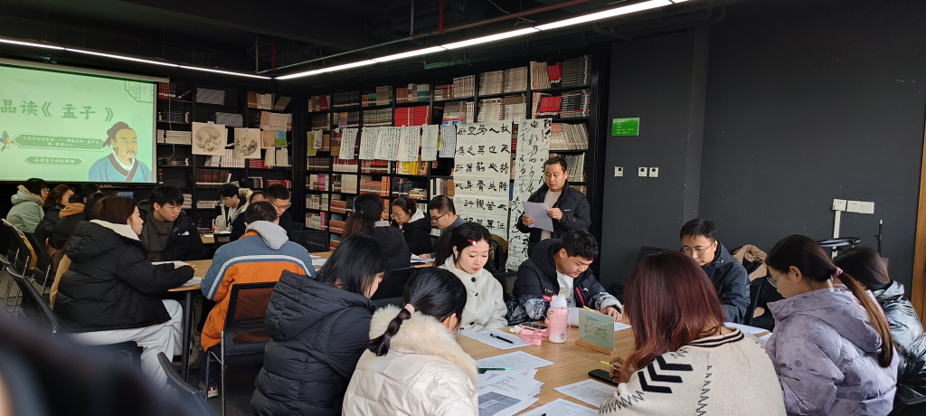 通过举办“品读《孟子》体味民本情怀”阅读创作大赛、“书香致远,思辨启新”阅读推广赛等活动,激发学生自主学习热情。此外,与美术馆联合开展的“妙笔绘伞·古韵雅集”等传统文化体验项目,进一步丰富了学术氛围,助力学生将理论知识与艺术实践相结合。