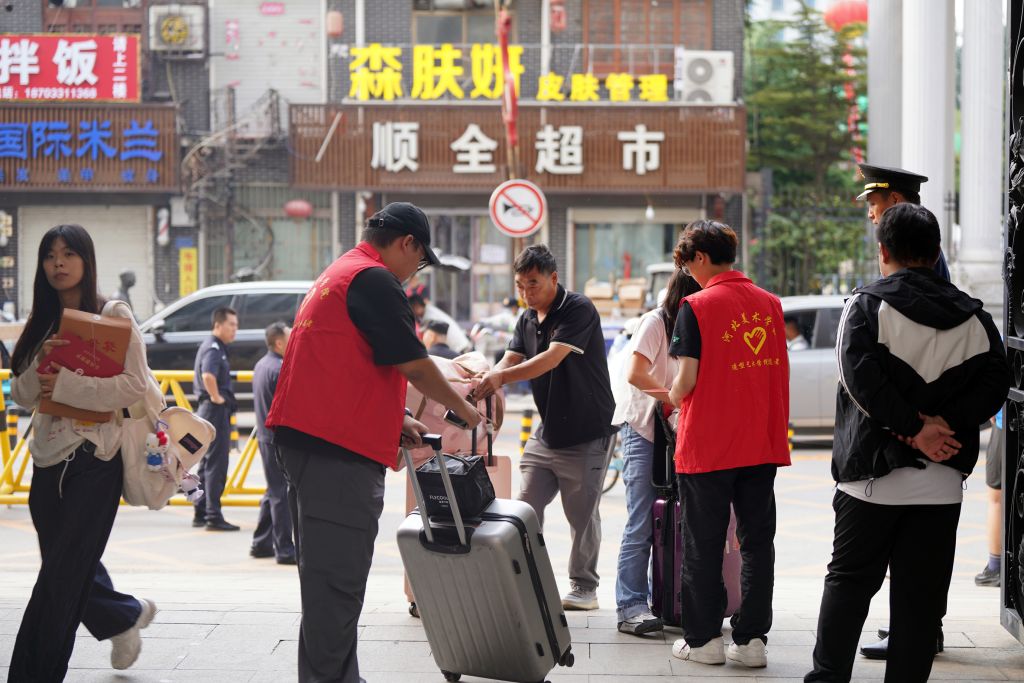 从车站到校门,从入校引导、手续办理到宿舍安置,迎新志愿者一路接力。一句“跟我来”驱散了陌生,一句“我帮你”消弭了距离。凌晨的微光里,他们奔忙的身影成为新生踏进大学校园的第一份安心。