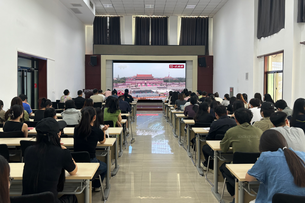 学校明确了分层组织、就近参与的观看方案:校领导、党委委员及各单位负责人在一号综合楼318会议室全程收看阅兵盛况,重点聆听习近平总书记重要讲话,深刻领会强国必须强军、军强才能国安的时代内涵;其他在校师生由各单位自行组织,在本单位会议室集中观看,确保人人参与、人人受教育。