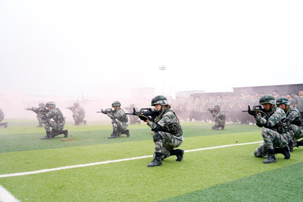 学生代表闫立坤发言。他代表全体参训同学向教官、老师们郑重承诺,全体参训同学一切行动听指挥,以军人的身份严格要求自己,严格遵守连队纪律、维护集体荣誉,戒骄戒躁,圆满完成军训任务。