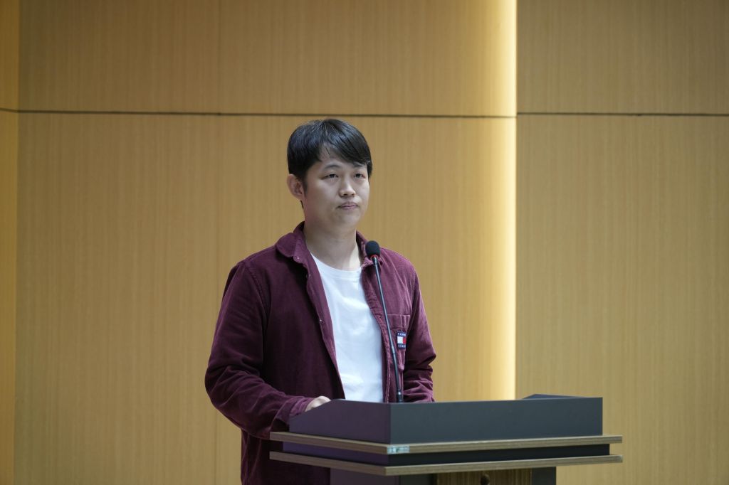 设计学院博士教师张博代表新入职教师发言,倡导大家做一个“笼天地于形内,挫万物于笔端”的美术教育的从业者。